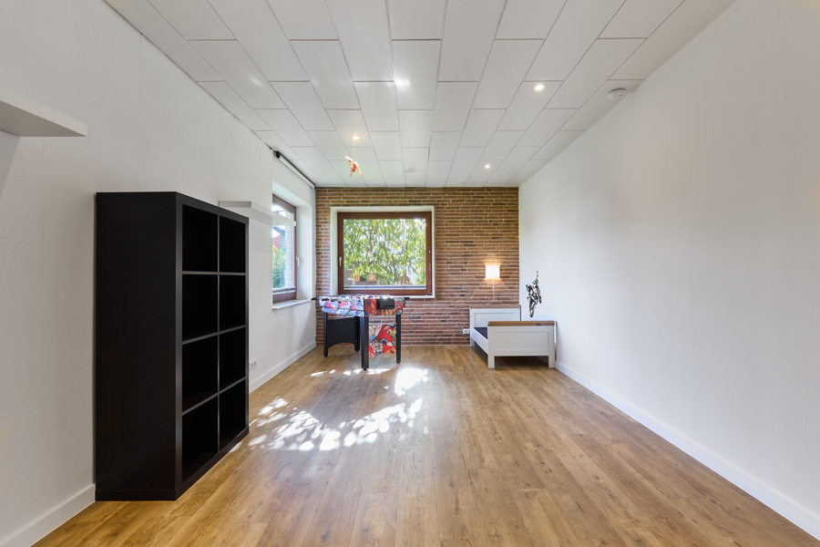 Das Haus ist vollständig unterkellert und bietet neben klassischen Nutzräumen einen hohen Freizeitwert: Eine gemütliche Hausbar mit Theke, ein Fitnessraum, ein Gästezimmer, ein Bad sowie eine Waschküche mit direktem Zugang in den Garten.