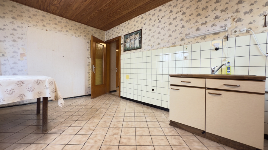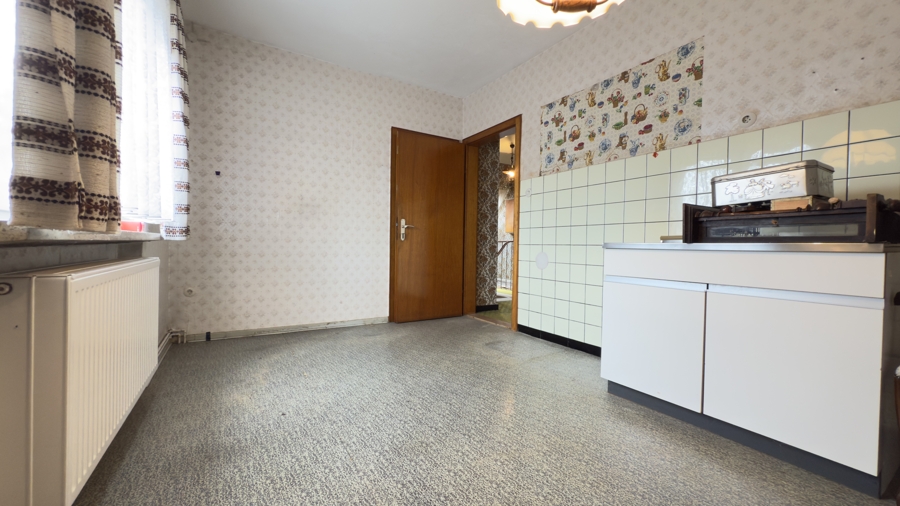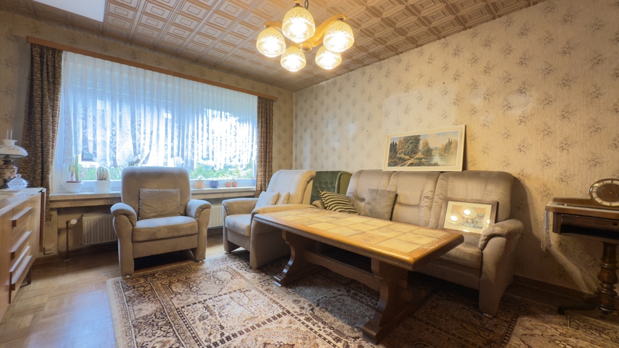 In Eickeloh wartet ein Zuhause mit Herz darauf, neu entdeckt zu werden: ein massiv gebautes, verputztes Siedlungshaus mit etwa 140 m² Wohnfläche auf einem großzügigen Grundstück von rund 890 m². Das klassische Satteldach mit warmen, braunen Tondachpfannen verleiht dem Haus seinen zeitlosen Charakter – passend ergänzt durch die Garage mit Abstellraum. Im Vollkeller findet alles seinen Platz, was man nicht täglich braucht – vom Hobby bis zur Vorratshaltung. Für wohlige Wärme sorgt die verlässliche Buderus-Ölheizung.Beim Eintreten empfängt Sie ein freundlicher Flur, von dem aus sich das gesamte Erdgeschoss erschließt. Angrenzend befinden sich Esszimmer, Küche als lebendiges Herz des Hauses, ein Bad mit Badewanne, ein ruhig gelegenes Schlafzimmer sowie ein einladendes Wohnzimmer zum Ankommen und Zusammensein.