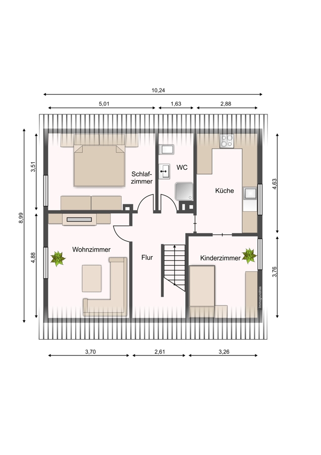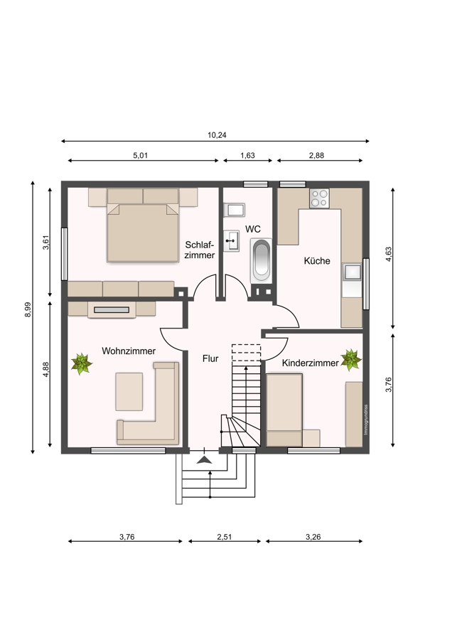 - Klare, funktionale Grundrisse: alle Räume vom Flur aus erreichbar