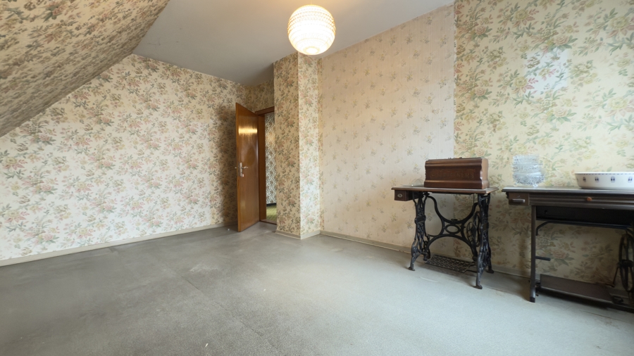 Im Dachgeschoss setzt sich dieses Gefühl von Klarheit und Freiheit fort: Der Flur erschließt mehrere Schlafzimmer sowie ein praktisches Duschbad. Ein weiterer Raum, der früher als Küche diente und heute als zusätzliches Schlafzimmer oder Badezimmer genutzt werden kann, eröffnet dank seiner Historie vielseitiges Ausbau- und Nutzungspotenzial. So lässt sich das Obergeschoss flexibel als Rückzugsbereich für Teenager, als Gästeetage oder als kleines, nahezu eigenständiges Refugium denken.