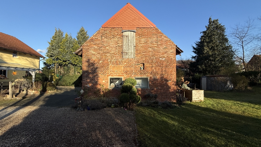 - Massives rot verklinkertes Nebengebäude (mittlerer Grundstücksteil)